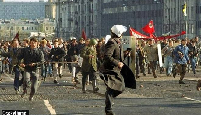 En el mes de octubre de 1993, se produjeron una serie de protestas fuertes (principalmente en Moscú) iniciadas por el intento de reforma constitucional del capitalista Yeltsin. Fueron varios días de lucha en las calles en defensa de los parlamentarios comunistas que se oponían a la reforma y a quienes había cercado el ejército.